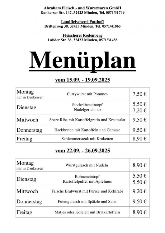 Unsere Renner sind seit Jahren: Abrahams Frikadellen, Potthoff`s Currywurst oder Rodenberg´s Fleischsalat.